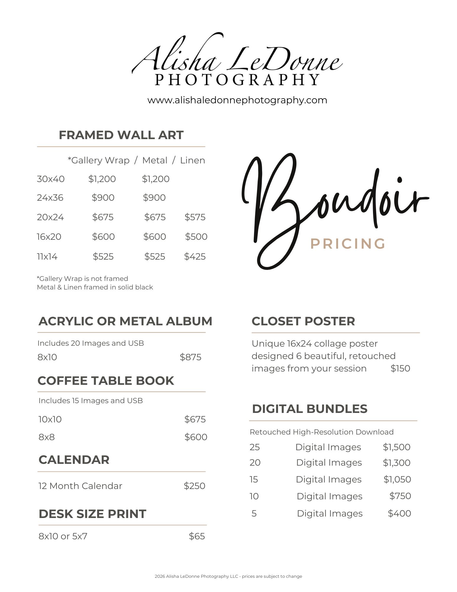 Save $50. on any of our Boudoir Sessions below!